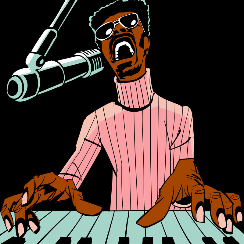 Illustration of Stevie Wonder circa 1973, arguably the height of his mighty powers.